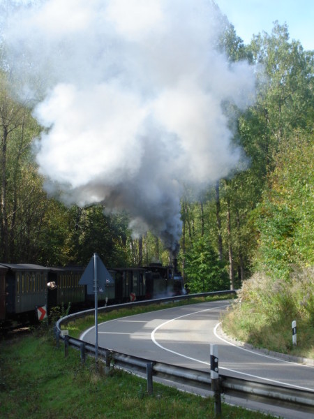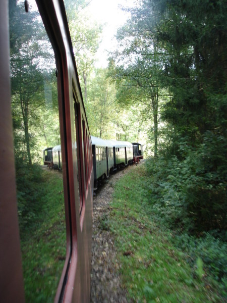 Bis Lambrecht wurde auf den Deutschen Bundesbahn Gleisen diese Dampffahrt absolviert bis dann ins Elmsteiner Tal eingebogen wurde. Danach ging die Dampflokfahrt über Breitenstein und Helmbach zu einem Fotostopp in Appenthal. Nach 12,9 km erreichten wir dann Elmstein die Endstation des Kuckucksbähnels.