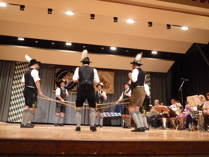 Weiter ging es mit den verschiedensten Tänzen aus den Alpen, mal paarweise, dann wieder als Schuhplattler oder wann es um die Gunst der Dirndln ging, als Watschenplattler.
