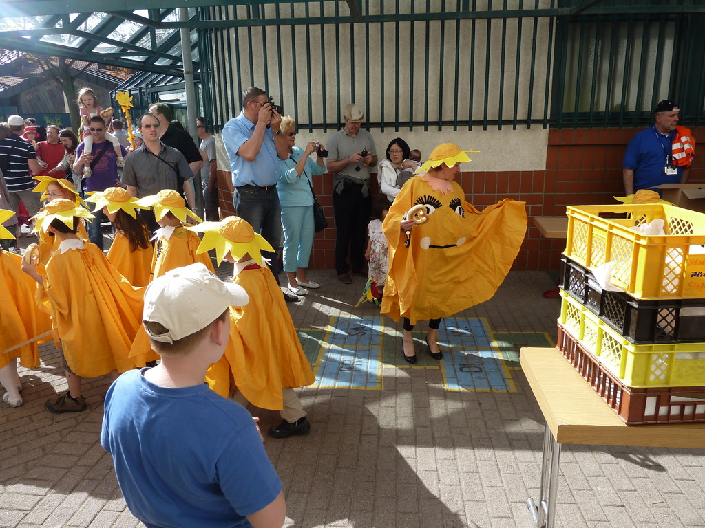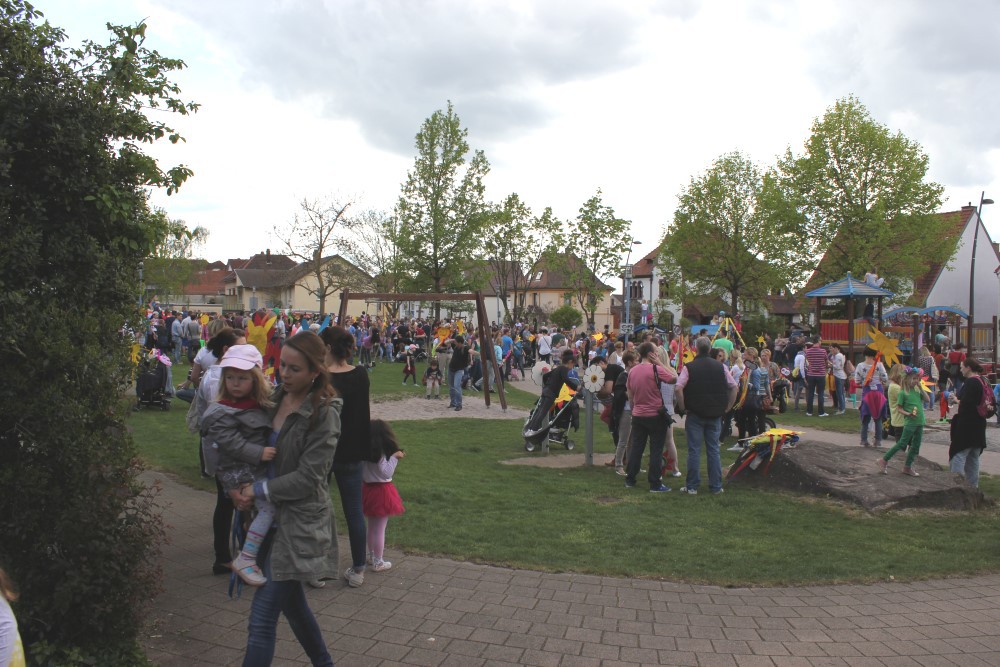Die Kinder der Lindenschule an der Barlachstraße präsentierten sich als Gärtnerinnen und Gärtner, Zwerge, Sonnen, Blumen, mit Vogelmasken, als Schmetterlinge und Frösche.