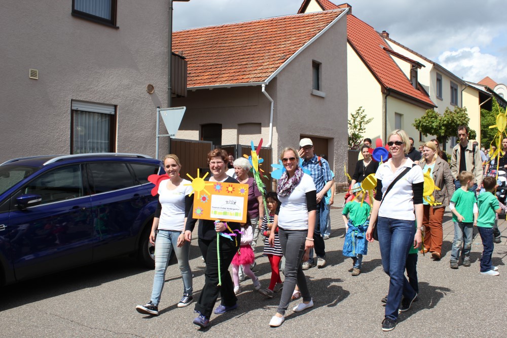 Die Kinder des Fröbelkindergartens mit Ihren Eltern präsentierten diesmal die Gruppe der Gärtnerinnen und Gärtner. Der Kath. Kindergarten St. Josef war durch eine bunte Gruppe von Wanderer vertreten.
